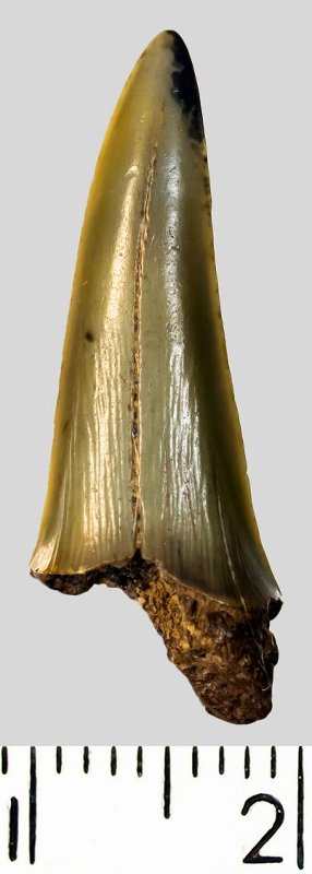 Зуб (фрагмент). Акула. Striatolamia macrota (Agassiz,1843)
