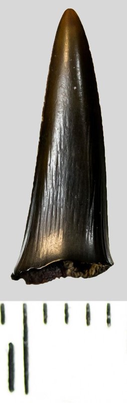Зуб (фрагмент). Акула. Striatolamia macrota (Agassiz, 1843)