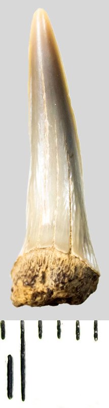 Зуб (фрагмент). Акула. Striatolamia macrota (Agassiz, 1843)