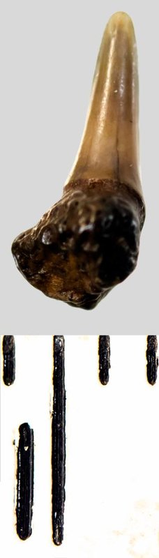 Зуб. Акула. Eostriatolamia subulata (Agassiz, 1843). Классификация: Хордовые Chordata, Позвоночные Vertebrata, Хрящевые рыбы Chondrichthyes, Пластиножаберные Elasmobranchii, Акулы Selachii, Ламнообразные Lamniformes, Песчаные акулы Odontaspididae