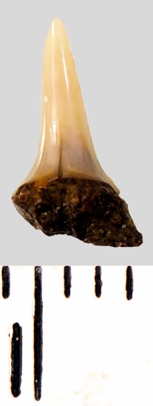 Зуб. Акула. Eostriatolamia subulata (Agassiz, 1843). Классификация: Хордовые Chordata, Позвоночные Vertebrata, Хрящевые рыбы Chondrichthyes, Пластиножаберные Elasmobranchii, Акулы Selachii, Ламнообразные Lamniformes, Песчаные акулы Odontaspididae