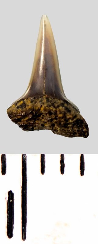 Зуб. Акула. Eostriatolamia subulata (Agassiz, 1843). Классификация: Хордовые Chordata, Позвоночные Vertebrata, Хрящевые рыбы Chondrichthyes, Пластиножаберные Elasmobranchii, Акулы Selachii, Ламнообразные Lamniformes, Песчаные акулы Odontaspididae