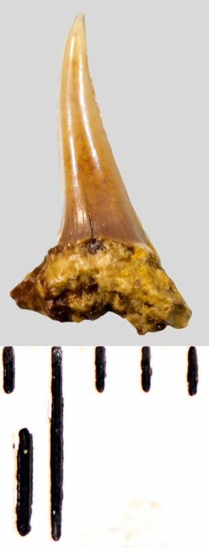 Зуб. Акула. Eostriatolamia subulata (Agassiz, 1843). Классификация: Хордовые Chordata, Позвоночные Vertebrata, Хрящевые рыбы Chondrichthyes, Пластиножаберные Elasmobranchii, Акулы Selachii, Ламнообразные Lamniformes, Песчаные акулы Odontaspididae