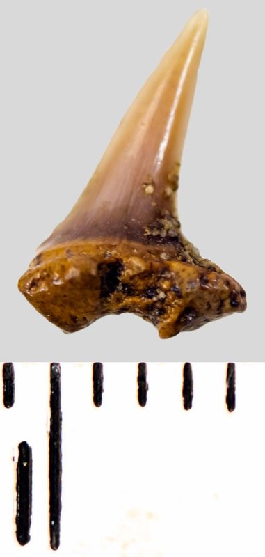 Зуб. Акула. Eostriatolamia subulata (Agassiz, 1843). Классификация: Хордовые Chordata, Позвоночные Vertebrata, Хрящевые рыбы Chondrichthyes, Пластиножаберные Elasmobranchii, Акулы Selachii, Ламнообразные Lamniformes, Песчаные акулы Odontaspididae