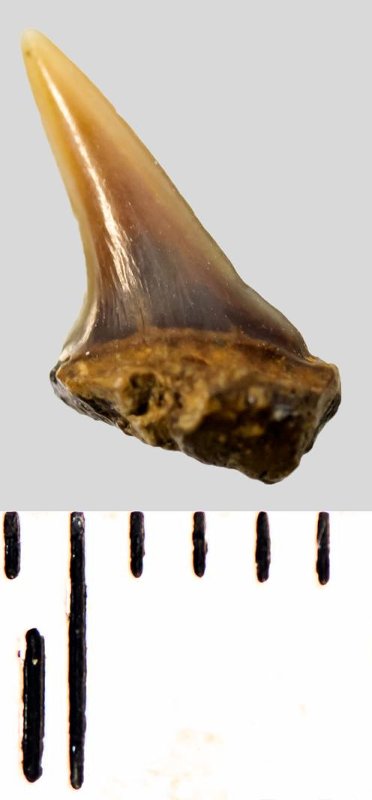Зуб. Акула. Eostriatolamia subulata (Agassiz, 1843). Классификация: Хордовые Chordata, Позвоночные Vertebrata, Хрящевые рыбы Chondrichthyes, Пластиножаберные Elasmobranchii, Акулы Selachii, Ламнообразные Lamniformes, Песчаные акулы Odontaspididae