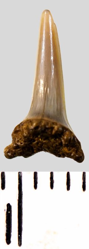 Зуб. Акула. Eostriatolamia subulata (Agassiz, 1843). Классификация: Хордовые Chordata, Позвоночные Vertebrata, Хрящевые рыбы Chondrichthyes, Пластиножаберные Elasmobranchii, Акулы Selachii, Ламнообразные Lamniformes, Песчаные акулы Odontaspididae