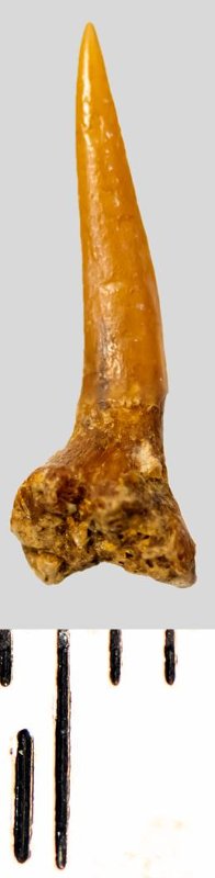 Зуб. Акула. Eostriatolamia subulata (Agassiz, 1843). Классификация: Хордовые Chordata, Позвоночные Vertebrata, Хрящевые рыбы Chondrichthyes, Пластиножаберные Elasmobranchii, Акулы Selachii, Ламнообразные Lamniformes, Песчаные акулы Odontaspididae