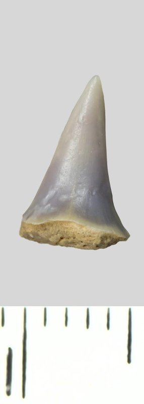 Зуб (фрагмент). Акула. Odontaspis venusta (Leriche, 1929). Классификация: Хордовые Chordata, Позвоночные Vertebrata, Хрящевые рыбы Chondrichthyes, Пластиножаберные Elasmobranchii