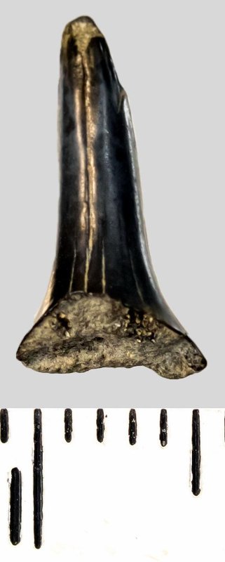 Зуб (фрагмент). Акула. Striatolamia macrota (Agassiz, 1843)