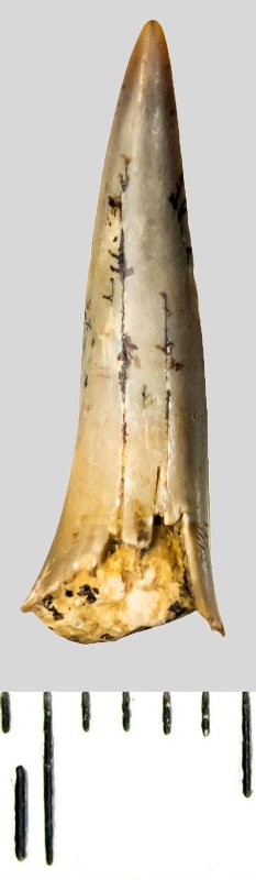 Зуб (фрагмент). Акула. Striatolamia macrota (Agassiz, 1843)