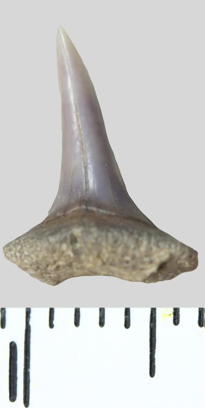Зуб. Акула. Odontaspis venusta (Leriche, 1929). Классификация: Хордовые Chordata, Позвоночные Vertebrata, Хрящевые рыбы Chondrichthyes, Пластиножаберные Elasmobranchii