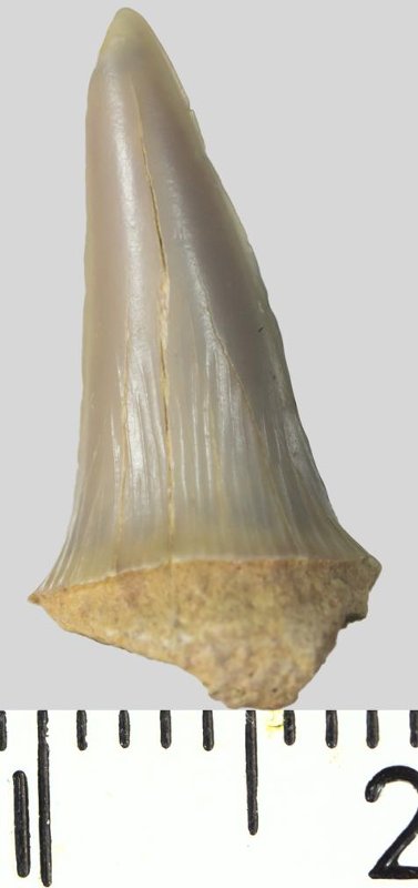 Зуб (фрагмент). Акула. Rhaphiodus sp. Классификация: Хордовые Chordata, Позвоночные Vertebrata, Хрящевые рыбы Chondrichthyes, Пластиножаберные Elasmobranchii