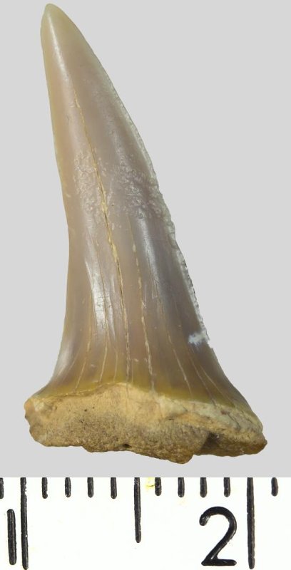 Зуб (фрагмент). Акула. Rhaphiodus sp. Классификация: Хордовые Chordata, Позвоночные Vertebrata, Хрящевые рыбы Chondrichthyes, Пластиножаберные Elasmobranchii
