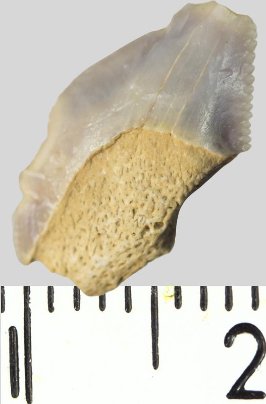Зуб (фрагмент). Акула. Anacorax sp. Классификация: Хордовые Chordata, Позвоночные Vertebrata, Хрящевые рыбы Chondrichthyes, Пластиножаберные Elasmobranchii