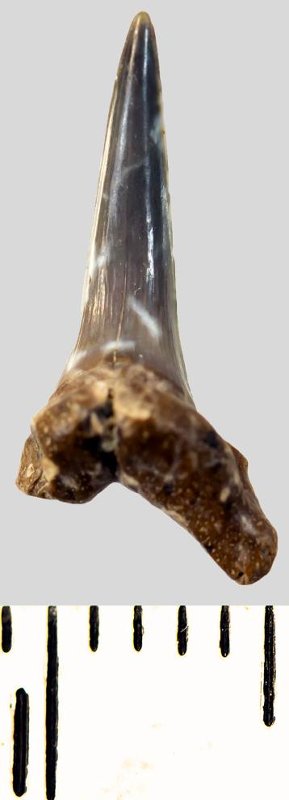 Зуб. Акула. Eostriatolamia subulata (Agassiz, 1843). Классификация: Хордовые Chordata, Позвоночные Vertebrata, Хрящевые рыбы Chondrichthyes, Пластиножаберные Elasmobranchii, Акулы Selachii, Ламнообразные Lamniformes, Песчаные акулы Odontaspididae