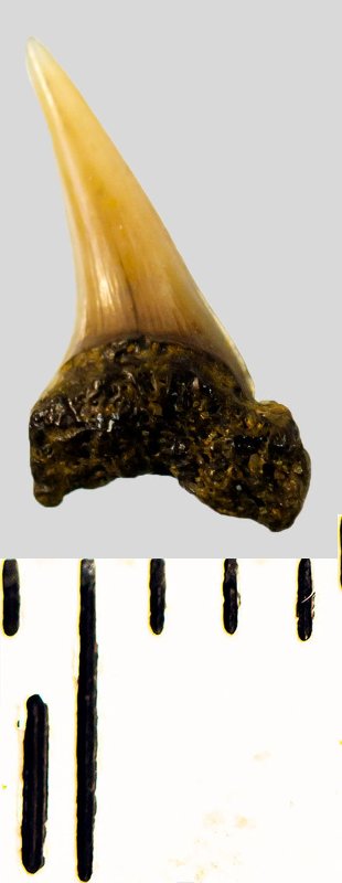 Зуб. Акула. Eostriatolamia subulata (Agassiz, 1843). Классификация: Хордовые Chordata, Позвоночные Vertebrata, Хрящевые рыбы Chondrichthyes, Пластиножаберные Elasmobranchii, Акулы Selachii, Ламнообразные Lamniformes, Песчаные акулы Odontaspididae