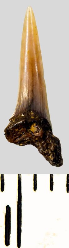 Зуб. Акула. Eostriatolamia subulata (Agassiz, 1843). Классификация: Хордовые Chordata, Позвоночные Vertebrata, Хрящевые рыбы Chondrichthyes, Пластиножаберные Elasmobranchii, Акулы Selachii, Ламнообразные Lamniformes, Песчаные акулы Odontaspididae