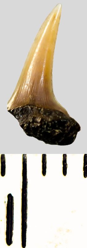 Зуб. Акула. Eostriatolamia subulata (Agassiz, 1843). Классификация: Хордовые Chordata, Позвоночные Vertebrata, Хрящевые рыбы Chondrichthyes, Пластиножаберные Elasmobranchii, Акулы Selachii, Ламнообразные Lamniformes, Песчаные акулы Odontaspididae