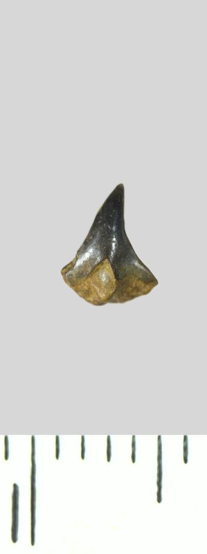 Зуб (фрагмент). Акула. Squatina sp. Классификация: Хордовые Chordata, Позвоночные Vertebrata, Хрящевые рыбы Chondrichthyes, Пластиножаберные Elasmobranchii