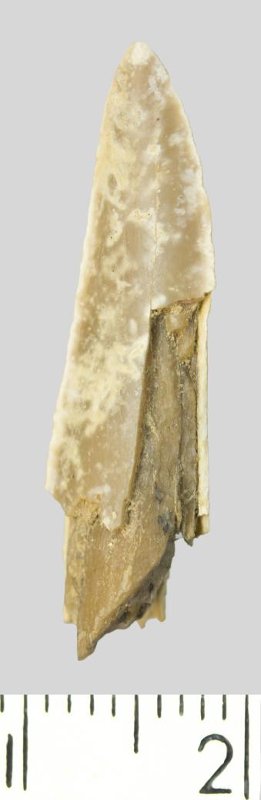 Зуб (фрагмент). Акула. Scapanorhynchus gigas Woodward, 1889. Классификация: Хордовые Chordata, Позвоночные Vertebrata, Хрящевые рыбы Chondrichthyes, Пластиножаберные Elasmobranchii