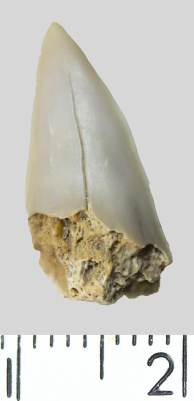 Зуб (фрагмент). Акула. Cretoxyrhina sp. Классификация: Хордовые Chordata, Позвоночные Vertebrata, Хрящевые рыбы Chondrichthyes, Пластиножаберные Elasmobranchii