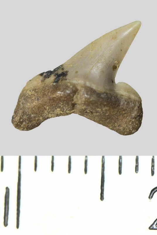 Зуб. Акула. Pseudocorax sp. Классификация: Хордовые Chordata, Позвоночные Vertebrata, Хрящевые рыбы Chondrichthyes, Пластиножаберные Elasmobranchii