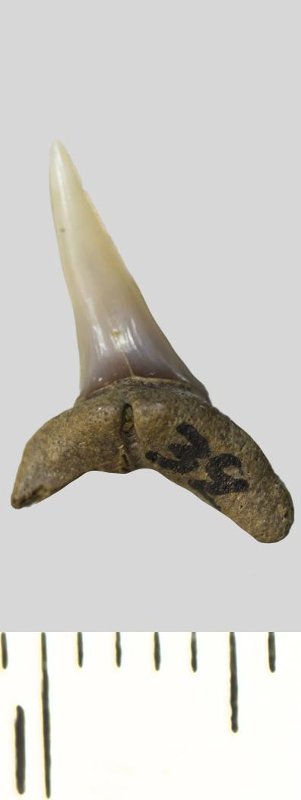 Зуб. Акула. Eostriatolamia sp. Классификация: Хордовые Chordata, Позвоночные Vertebrata, Хрящевые рыбы Chondrichthyes, Пластиножаберные Elasmobranchii