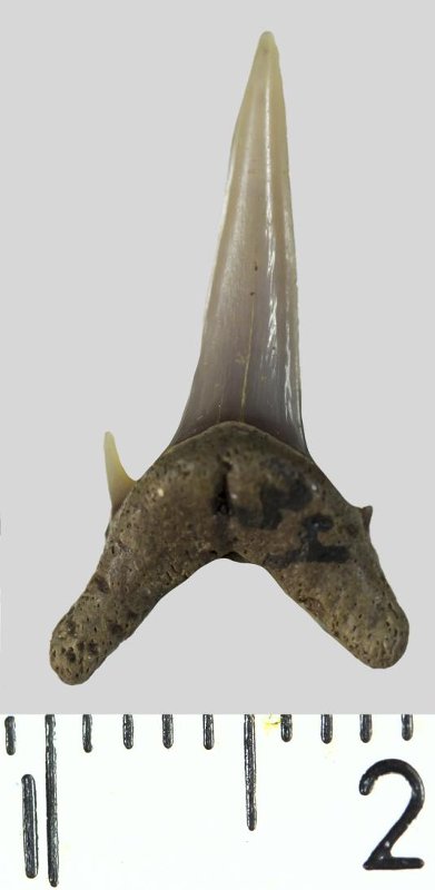 Зуб. Акула. Eostriatolamia sp. Классификация: Хордовые Chordata, Позвоночные Vertebrata, Хрящевые рыбы Chondrichthyes, Пластиножаберные Elasmobranchii