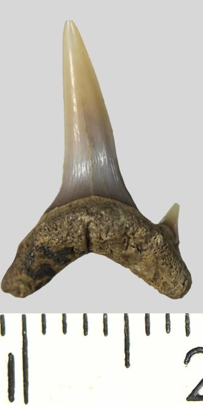 Зуб. Акула. Eostriatolamia sp. Классификация: Хордовые Chordata, Позвоночные Vertebrata, Хрящевые рыбы Chondrichthyes, Пластиножаберные Elasmobranchii