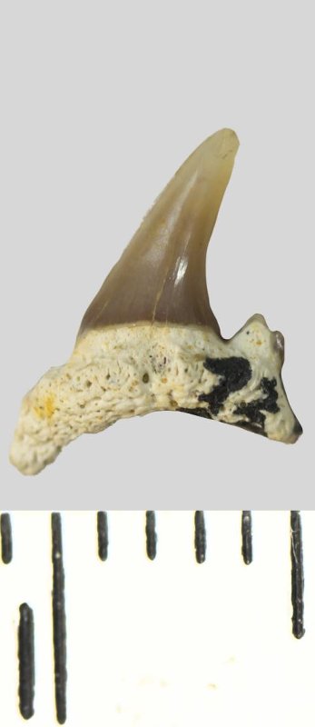 Зуб. Акула. Eostriatolamia sp. Классификация: Хордовые Chordata, Позвоночные Vertebrata, Хрящевые рыбы Chondrichthyes, Пластиножаберные Elasmobranchii