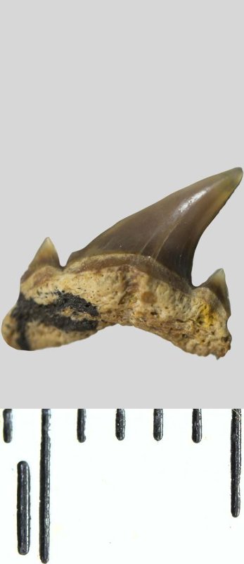 Зуб. Акула. Eostriatolamia sp. Классификация: Хордовые Chordata, Позвоночные Vertebrata, Хрящевые рыбы Chondrichthyes, Пластиножаберные Elasmobranchii