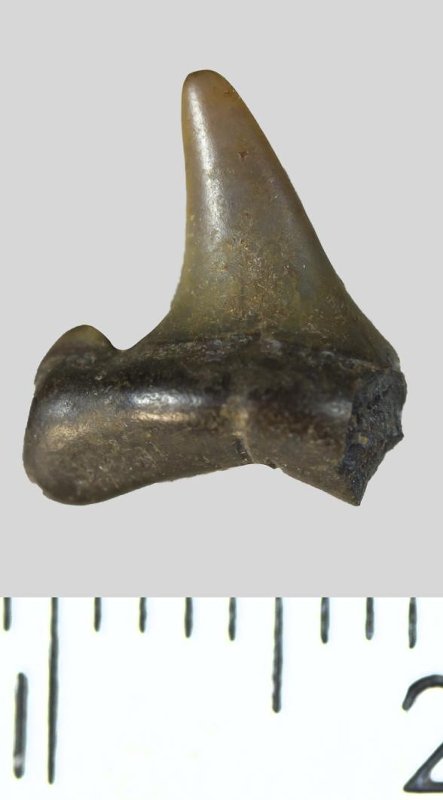 Зуб. Акула. Eostriatolamia venusta Leriche, 1906. Классификация: Хордовые Chordata, Позвоночные Vertebrata, Хрящевые рыбы Chondrichthyes, Пластиножаберные Elasmobranchii