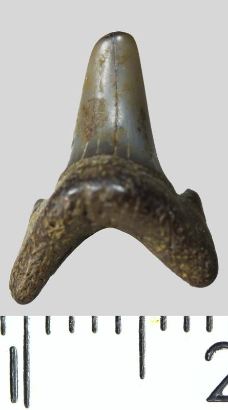 Зуб. Акула. Eostriatolamia venusta Leriche, 1906. Классификация: Хордовые Chordata, Позвоночные Vertebrata, Хрящевые рыбы Chondrichthyes, Пластиножаберные Elasmobranchii