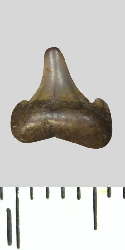 Зуб. Акула. Eostriatolamia venusta Leriche, 1906. Классификация: Хордовые Chordata, Позвоночные Vertebrata, Хрящевые рыбы Chondrichthyes, Пластиножаберные Elasmobranchii