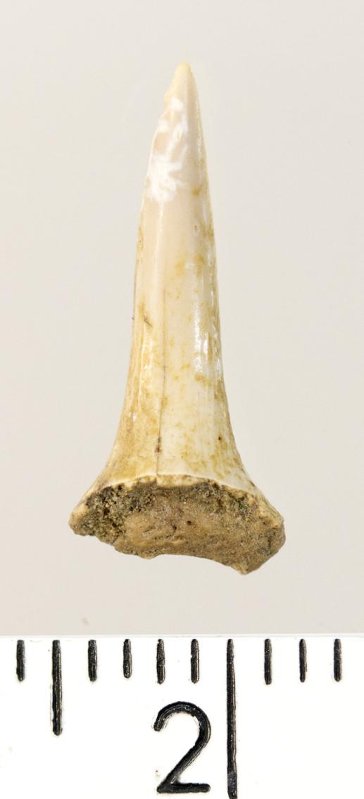 Зуб (фрагмент). Акула. Hypotodus sp. Классификация: Хордовые Chordata, Позвоночные Vertebrata, Хрящевые рыбы Chondrichthyes, Пластиножаберные Elasmobranchii