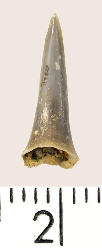 Зуб (фрагмент). Акула. Hypotodus sp. Классификация: Хордовые Chordata, Позвоночные Vertebrata, Хрящевые рыбы Chondrichthyes, Пластиножаберные Elasmobranchii