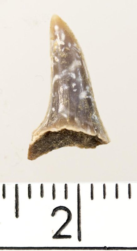 Зуб (фрагмент). Акула. Hypotodus sp. Классификация: Хордовые Chordata, Позвоночные Vertebrata, Хрящевые рыбы Chondrichthyes, Пластиножаберные Elasmobranchii