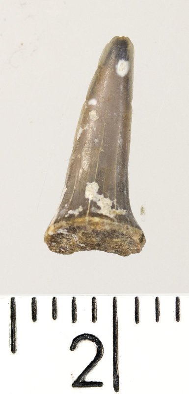 Зуб (фрагмент). Акула. Hypotodus sp. Классификация: Хордовые Chordata, Позвоночные Vertebrata, Хрящевые рыбы Chondrichthyes, Пластиножаберные Elasmobranchii
