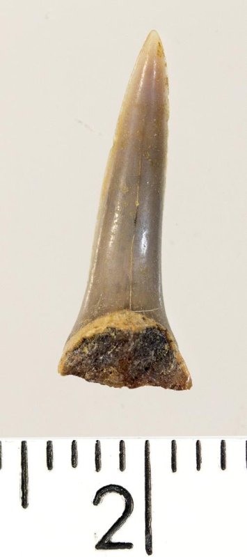 Зуб (фрагмент). Акула. Hypotodus sp. Классификация: Хордовые Chordata, Позвоночные Vertebrata, Хрящевые рыбы Chondrichthyes, Пластиножаберные Elasmobranchii