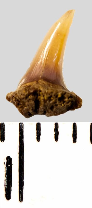 Зуб. Акула. Eostriatolamia subulata (Agassiz, 1843). Классификация: Хордовые Chordata, Позвоночные Vertebrata, Хрящевые рыбы Chondrichthyes, Пластиножаберные Elasmobranchii, Акулы Selachii, Ламнообразные Lamniformes, Песчаные акулы Odontaspididae