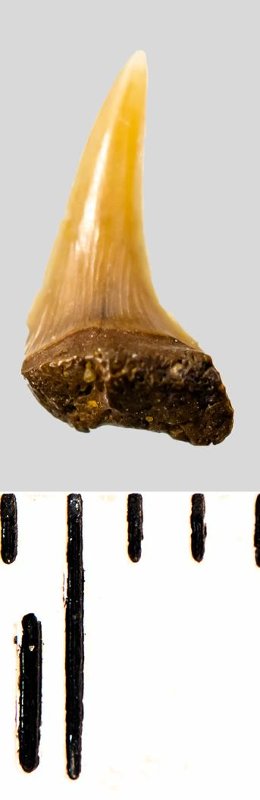 Зуб. Акула. Eostriatolamia subulata (Agassiz, 1843). Классификация: Хордовые Chordata, Позвоночные Vertebrata, Хрящевые рыбы Chondrichthyes, Пластиножаберные Elasmobranchii, Акулы Selachii, Ламнообразные Lamniformes, Песчаные акулы Odontaspididae