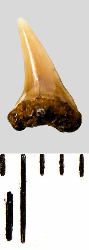 Зуб. Акула. Eostriatolamia subulata (Agassiz, 1843). Классификация: Хордовые Chordata, Позвоночные Vertebrata, Хрящевые рыбы Chondrichthyes, Пластиножаберные Elasmobranchii, Акулы Selachii, Ламнообразные Lamniformes, Песчаные акулы Odontaspididae
