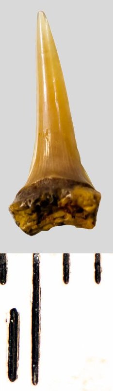 Зуб. Акула. Eostriatolamia subulata (Agassiz, 1843). Классификация: Хордовые Chordata, Позвоночные Vertebrata, Хрящевые рыбы Chondrichthyes, Пластиножаберные Elasmobranchii, Акулы Selachii, Ламнообразные Lamniformes, Песчаные акулы Odontaspididae