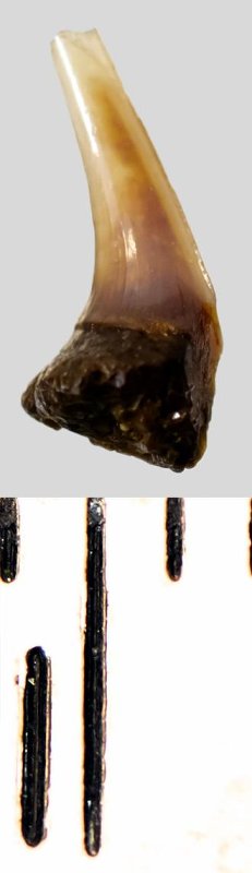 Зуб. Акула. Eostriatolamia subulata (Agassiz, 1843). Классификация: Хордовые Chordata, Позвоночные Vertebrata, Хрящевые рыбы Chondrichthyes, Пластиножаберные Elasmobranchii, Акулы Selachii, Ламнообразные Lamniformes, Песчаные акулы Odontaspididae
