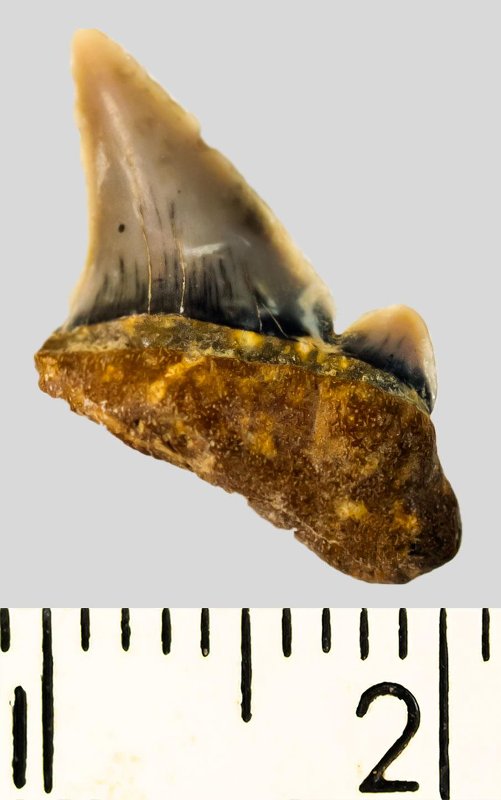 Зуб. Акула. Otodus subserratus (Agassiz, 1843). Классификация: Хордовые Chordata, Позвоночные Vertebrata, Хрящевые рыбы Chondrichthyes, Пластиножаберные Elasmobranchii