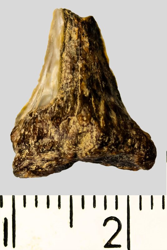 Зуб. Акула. Otodus subserratus (Agassiz, 1843). Классификация: Хордовые Chordata, Позвоночные Vertebrata, Хрящевые рыбы Chondrichthyes, Пластиножаберные Elasmobranchii