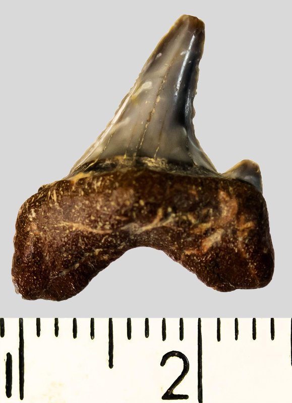 Зуб. Акула. Otodus subserratus (Agassiz, 1843). Классификация: Хордовые Chordata, Позвоночные Vertebrata, Хрящевые рыбы Chondrichthyes, Пластиножаберные Elasmobranchii