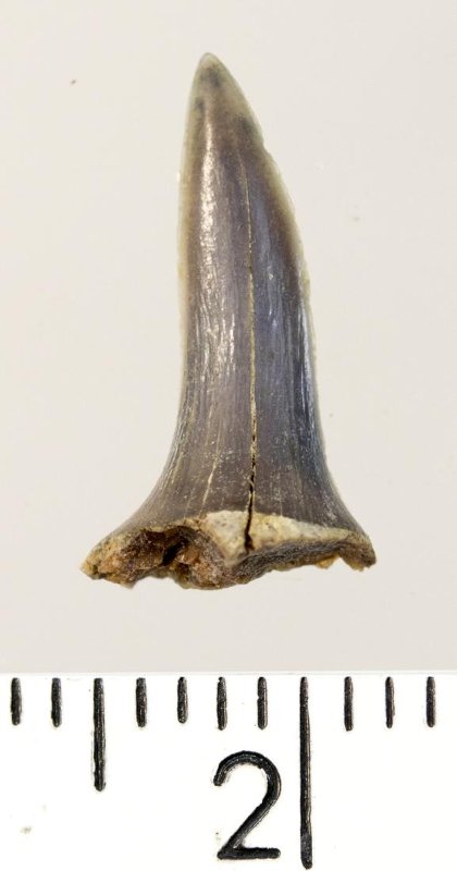 Зуб (фрагмент). Акула. Hypotodus sp. Классификация: Хордовые Chordata, Позвоночные Vertebrata, Хрящевые рыбы Chondrichthyes, Пластиножаберные Elasmobranchii