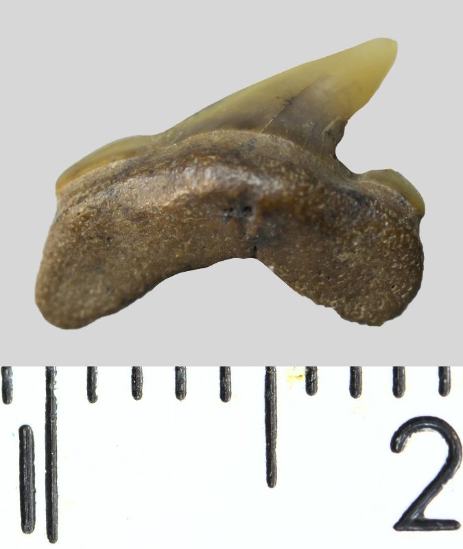 Зуб. Акула. Pseudocorax sp. Классификация: Хордовые Chordata, Позвоночные Vertebrata, Хрящевые рыбы Chondrichthyes, Пластиножаберные Elasmobranchii
