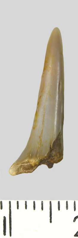Зуб (фрагмент). Акула. Lamniformes gen. et sp. indet. Классификация: Хордовые Chordata, Позвоночные Vertebrata, Хрящевые рыбы Chondrichthyes, Пластиножаберные Elasmobranchii